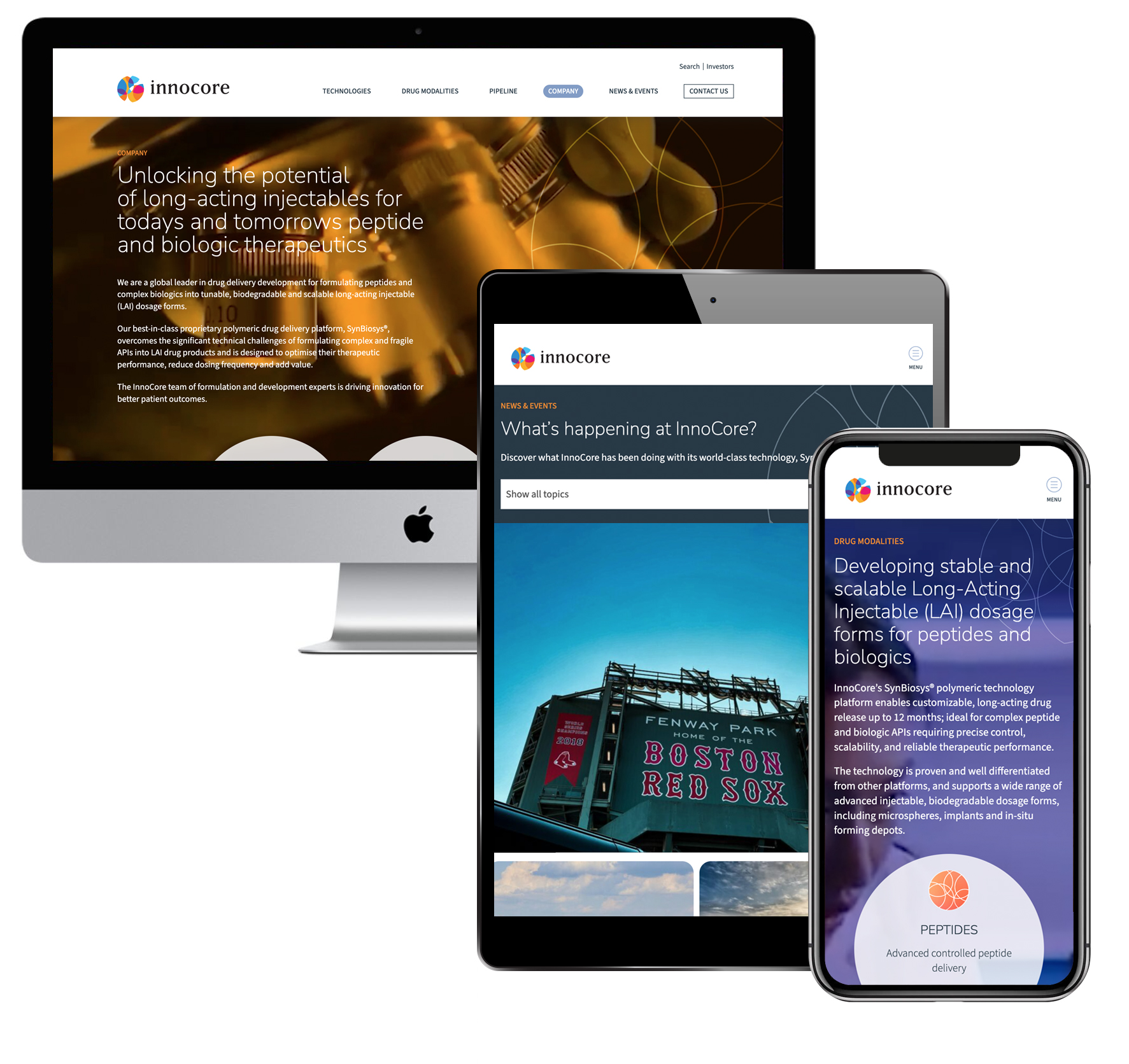 To support InnoCore Pharmaceuticals’ evolving market position, we developed a distinctive corporate website that reinforces its leadership in long-acting injectable (LAI) formulation technology. As the company shifts focus from a general drug delivery provider to a specialist in peptide and protein-based therapies, our strategy redefined its digital presence around its proprietary polymer science expertise.