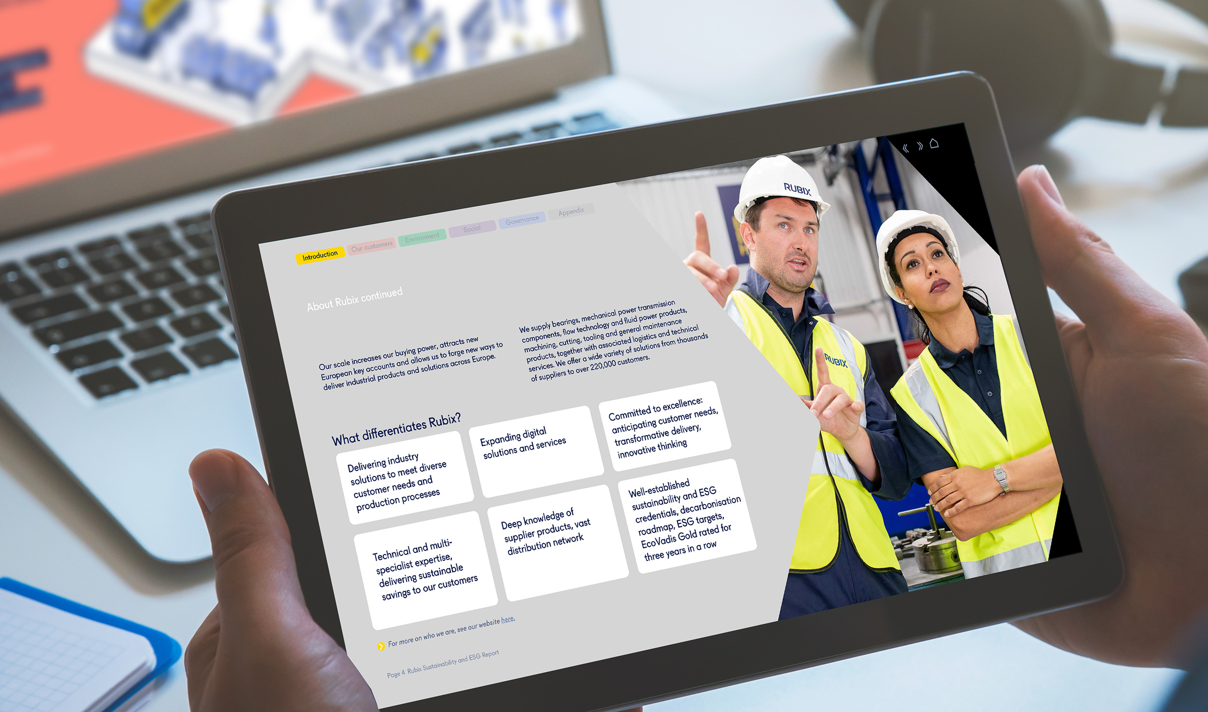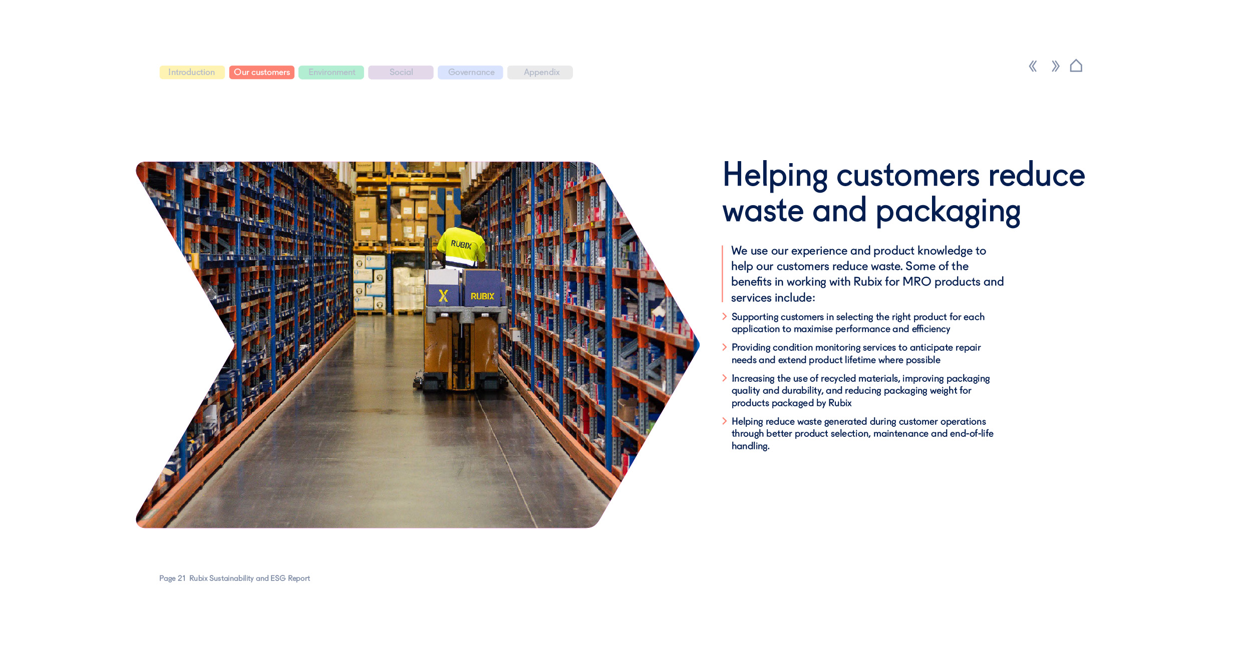 With demonstrating customers the value of Rubix’s sustainable offers in mind, the report was created to allow easy extraction of key messages and data, so teams can share relevant content with both existing and potential customers. The overall design remains consistent with the Rubix brand, while supporting the wider goal of transparency and engagement around Sustainability and ESG topics.